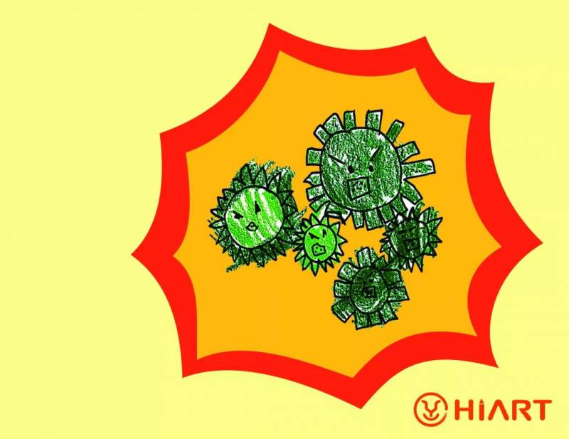 小彩虹给病毒画上了非常生气的表情,长得真的是很讨人厌呢!