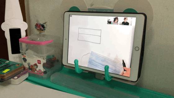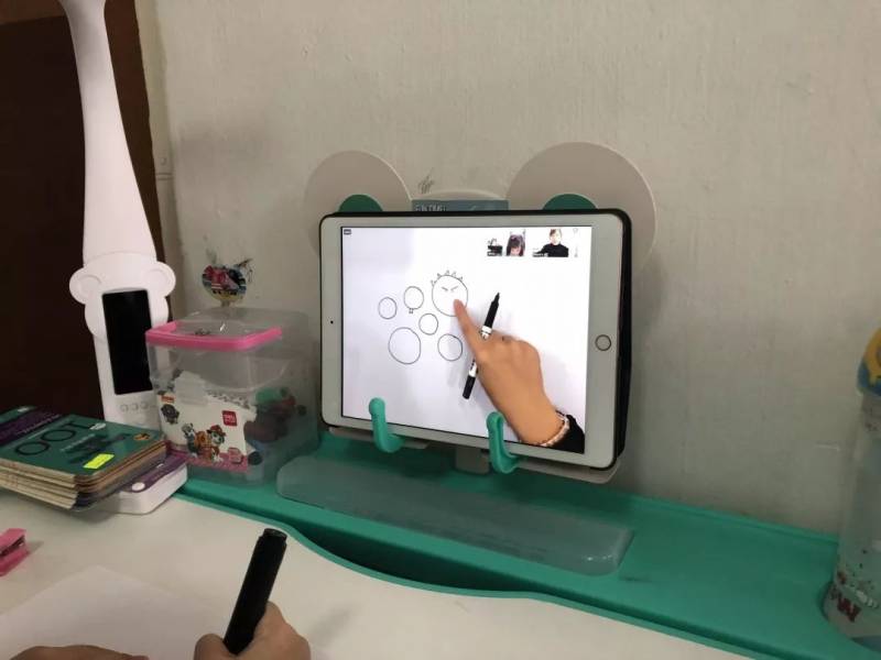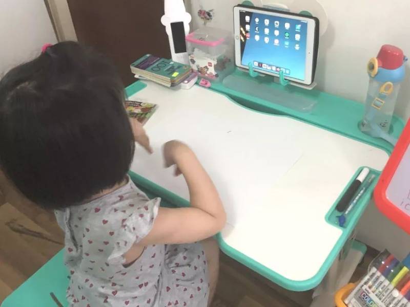 小彩虹今年4岁,在幼儿园上K1,平时在家就非常喜欢画画。今天是她第一次尝试上一对一绘画网课,知道即将在iPad里面见到画画老师,她感到非常好奇和兴奋。