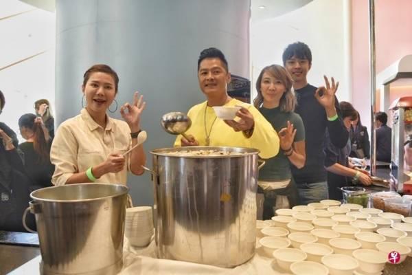 李南星前午率领公司旗下艺人宋怡霏、郭威乐和陈欣淇前往东部为某执行共管公寓的推介仪式站台,不但与现场互动,还派粥给公众们品尝。