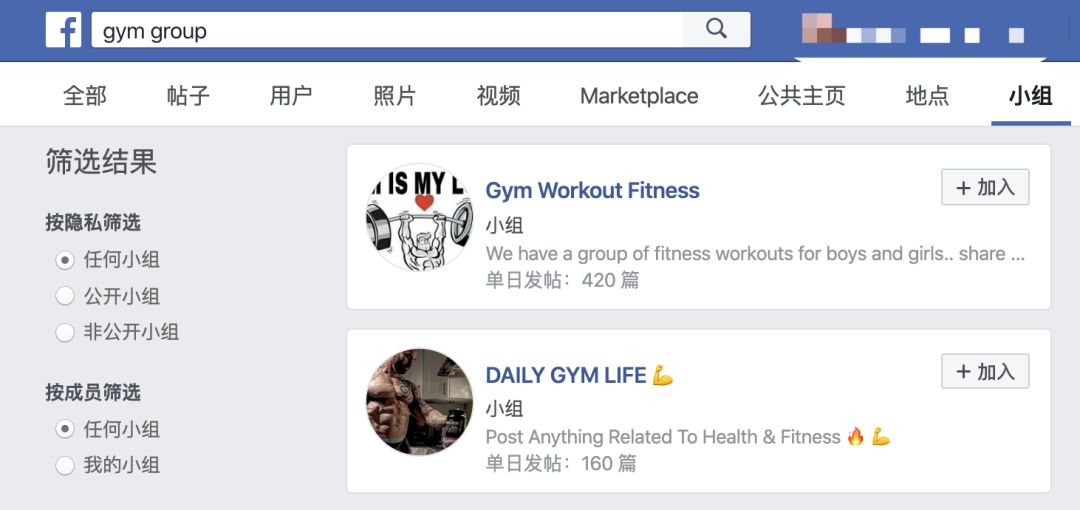 看完上面的是不是觉得距离自己的生活有点远?各种健身群了解一下?Facebook搜“Gym Group”或者“Running group”等等关键词,就能找到很多群组啦,一般发申请给群管理员,几天就能得到批准啦~不能出门先加群呗,了解一下怎么参加~