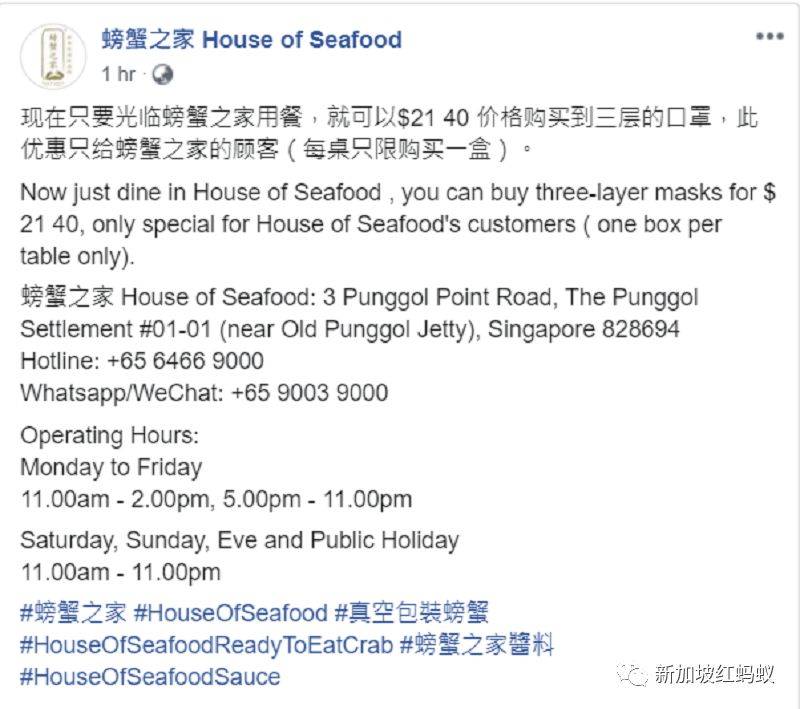 政府屡次告诉国人对抗“2019冠状病毒疾病(冠病19)”,生病时才戴,没有病不要戴。佩戴口罩不是最重要的,用肥皂洗手才最重要。理性的我们,知道新加坡目前有口罩库存,但是如果冠病疫情持续蔓延开来,在接下来几个月感染人数飙升,再加上国人大量囤积,口罩库存很可能就不够用;也明白我们应该优先将口罩库存让给正在前线抗炎的医护人员使用。 但感性的我们每每看到中国疫情肆虐,当地人人都戴着口罩的新闻照片,全球出现“口罩荒”、多个地区出现抢购口罩潮,本地同样也“一罩难求”时,就很难理智起来。 尤其是看到身为小市民的我们,处于购买口罩的“食物链”最底端,既没财又没人脉,即使知道哪里可以进口口罩,也没钱支付一定的进口数量。要小量进口又需要靠人脉,我们也没人脉。即使有钱有人脉,还需要注册一家公司,向有关当局申请进口许可证。 在这种关键又敏感的时刻,突然看到网上不断出现某某大公司高价购买了一大批口罩、洗手液来送给客户;某某商家以送口罩作为吸引顾客签订配套的伎俩时,再理智的我们也会被感性的那面击倒,无名火蹭蹭蹭就上来了。 口罩原来都被这些商家买去当赠品螃蟹之家星期天(9日)在Facebook上载的帖文表示: “现在只要光临螃蟹之家用餐,就可以21.40元的价格购买到三层的口罩,此优惠只给螃蟹之家的顾客(每桌只限购买一盒)。”