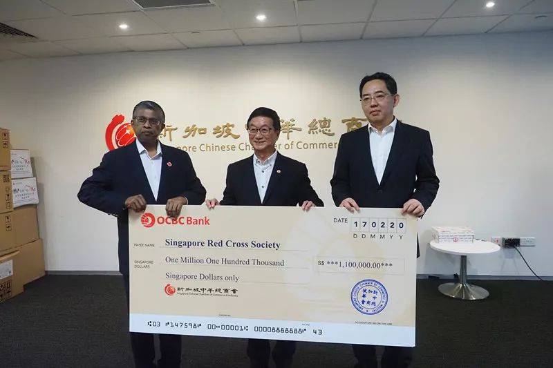中华总商会在中华人民共和国驻新加坡特命全权大使洪小勇的见证下,将第一阶段所筹得的110万新元善款移交给新加坡红十字会秘书长兼总裁 Benjamin William 先生。