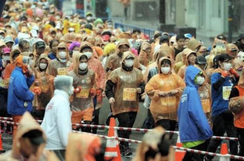 尽管日本的感染情况十分严重,但是2月16日,京都等地的12场马拉松照常举行,超50万人参加。值得一提的是熊本城马拉松,为了防止疫情传染,大批选手戴着口罩奔跑,实属罕见。