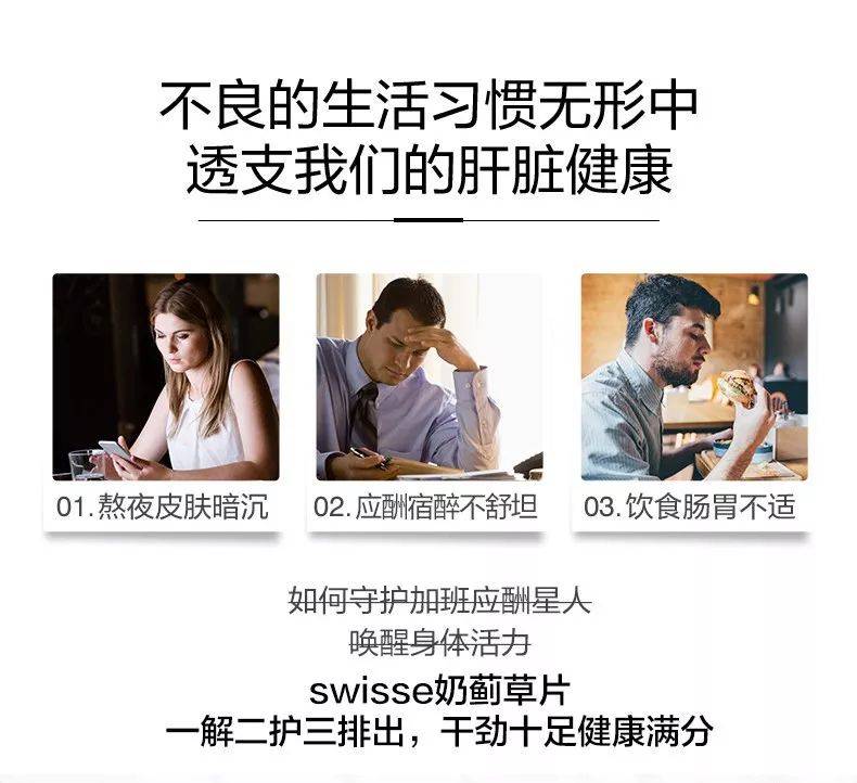 主要成分:奶蓟草:(护肝名草加快毒素代谢)洋蓟:(从内护肝)姜黄:(排出毒素,缓解肠胃不适)功效:解毒素、护肝、养胃适宜人群:熬夜加班、喝酒吸烟人士