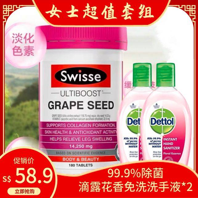 葡萄籽+2瓶滴露除菌免洗洗手液(2*50ml)