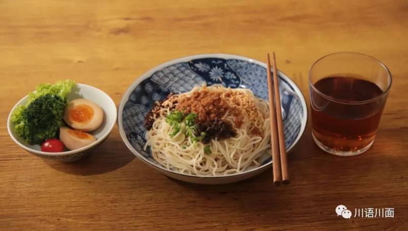 香脆的肉臊子加上烘烤过的花生颗粒,散落在面碗里,混和均匀后,每一口都是香香脆脆。再加上精心调制的担担面酱料,又辣又香,回味无穷。据说是日本客人的最爱。