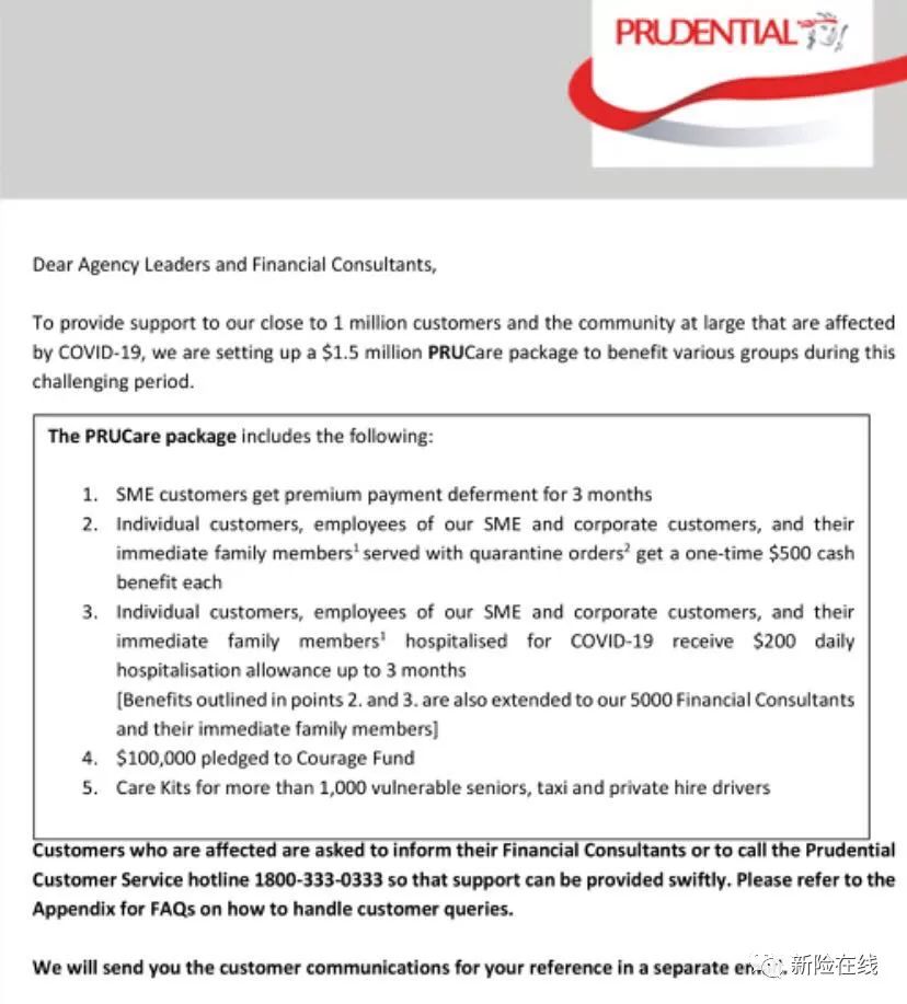 新加坡保诚保险私人有限公司(“保诚”)迅速响应,设立新币1.5Million专项资金PruCare package 针对新型肺炎率先推出多项应急措施及免费额外保障,与大家并肩同行,携手客户共渡难关.