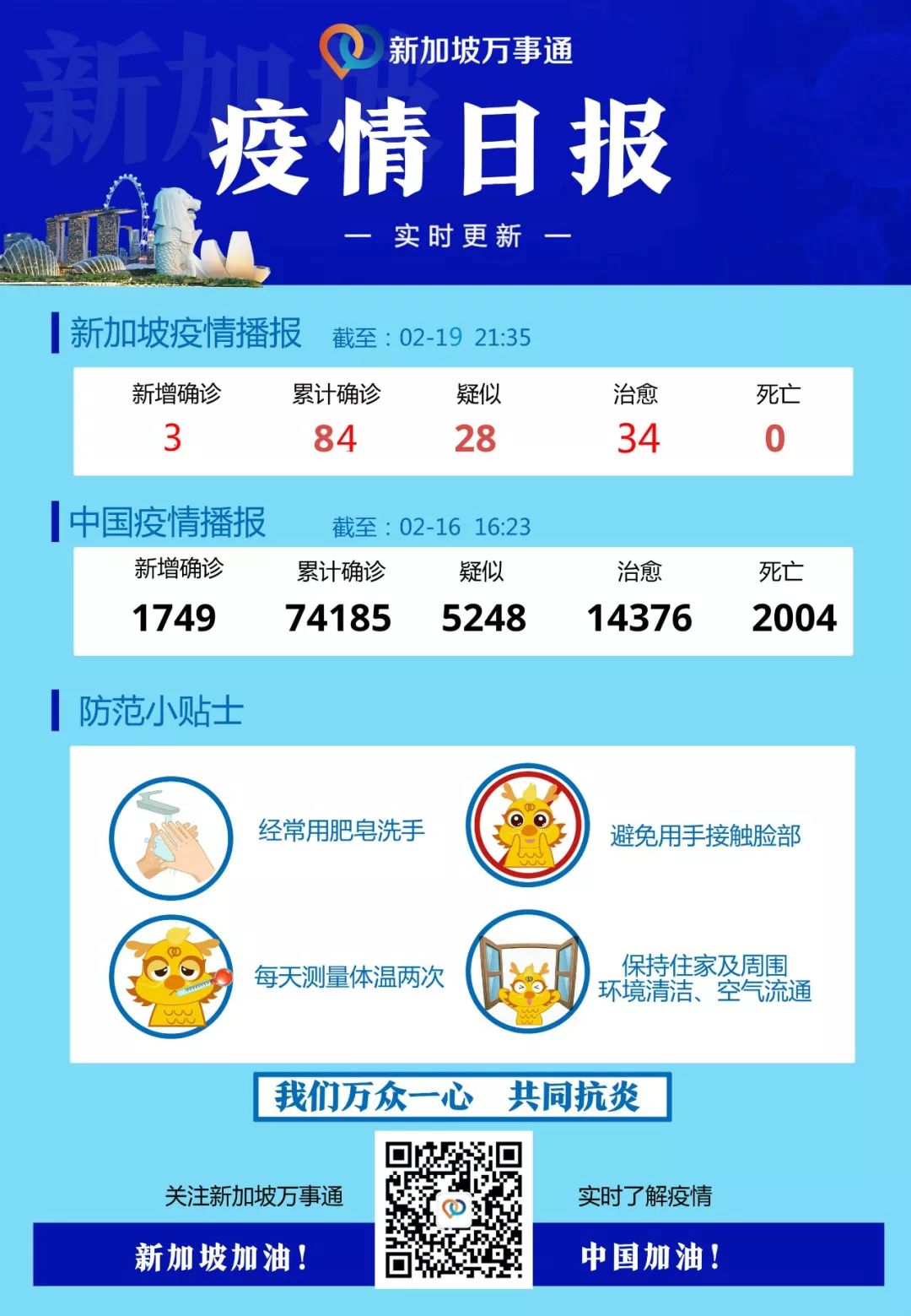 截止发稿,新加坡已确诊84个病例,治愈34例: