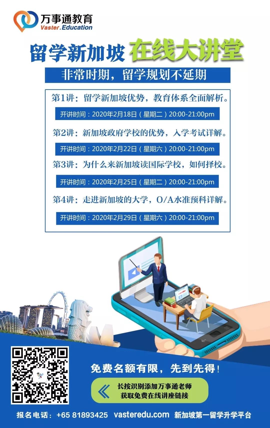 非常时期,我们为大家推出了【留学新加坡在线大讲堂】,你最想了解的留学新加坡干货,统统在这里~让你足不出户轻松掌握留学最新动态,了解最全留学体系吧!