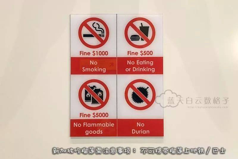 新加坡榴梿有一种气味,对第一次吃榴梿的朋友,通常难以接受。但是吃了一口榴梿之后,就对榴梿无法自拔。既然榴梿带有异气味,我都会推荐朋友在现场吃榴梿尝鲜是最好,不鼓励外带榴梿,因为新加坡地铁和巴士都不允许携带榴梿,因为榴梿打开后,若是没有包装好,漏的异味给使用公共运输者不适。同时,酒店也不允许携带榴梿在房间内用。