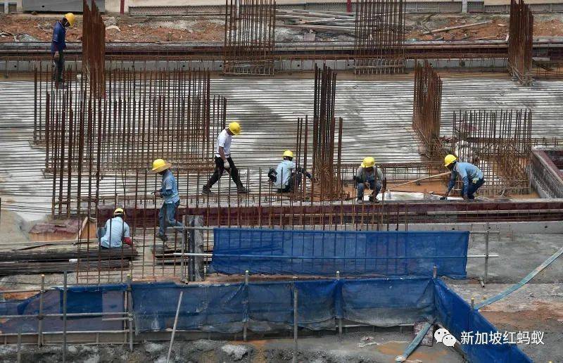 新加坡建筑工地聘用了许多外籍客工。(海峡时报)