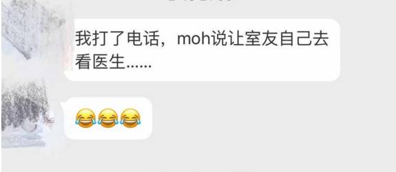 网友在建议下拨打了新加坡卫生部的电话,卫生部让室友自行去看医生。