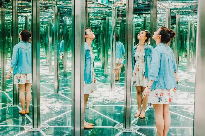 以花园为主题的镜子迷宫是一个光怪陆离的世界