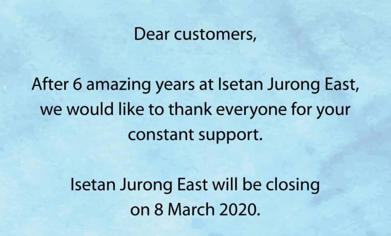 而伊势丹也宣布,Jurong East分店将会在3月8日关闭。 目前伊势丹JE店在做搬走前的清货,高达80%off,大家有空快去逛一下吧。