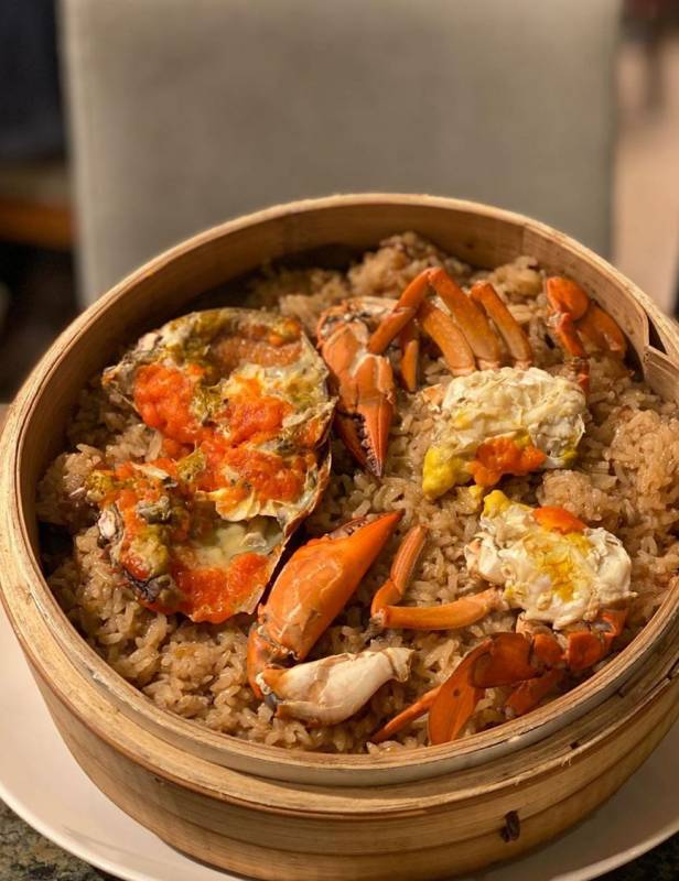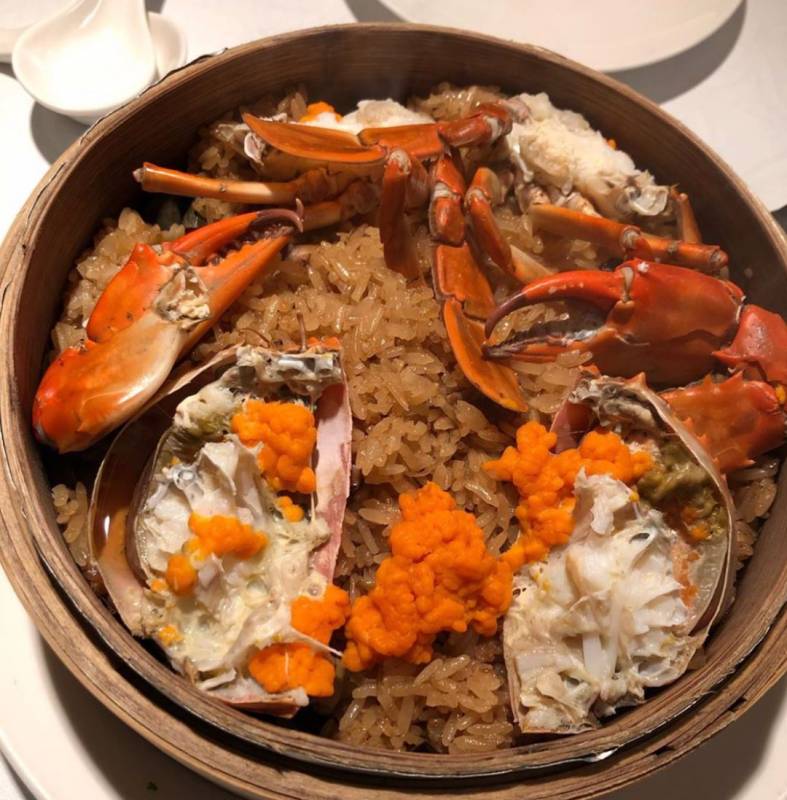 这一盘红蟹米糕可以说是几乎每桌必点的网红菜。
