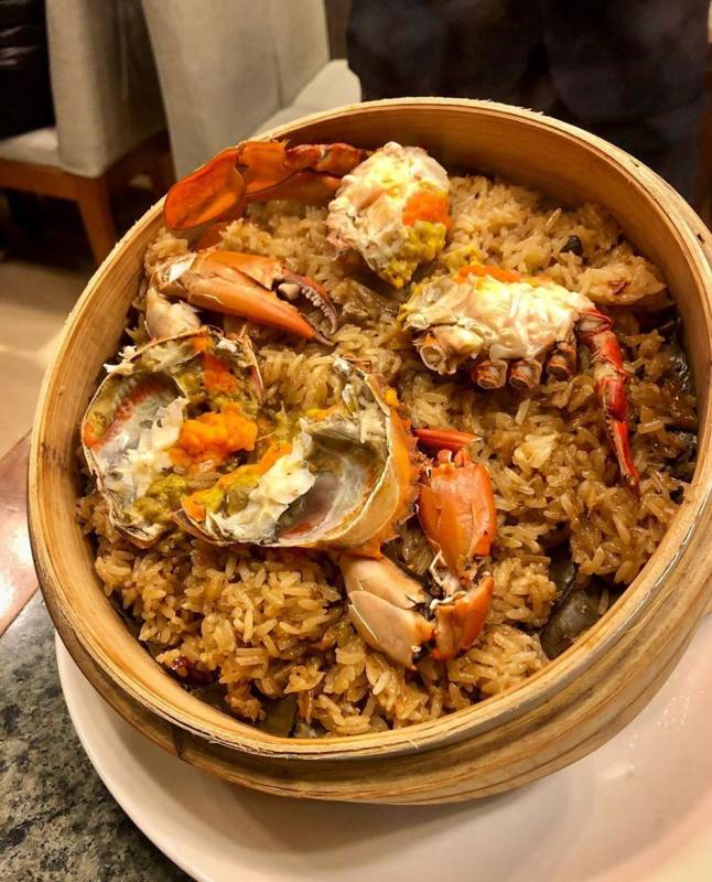 香糯的粘米饭上,铺着蒸得火候刚好的蟹。蟹肉鲜嫩甜美,搭配米饭一起吃,鲜得不得了。