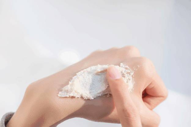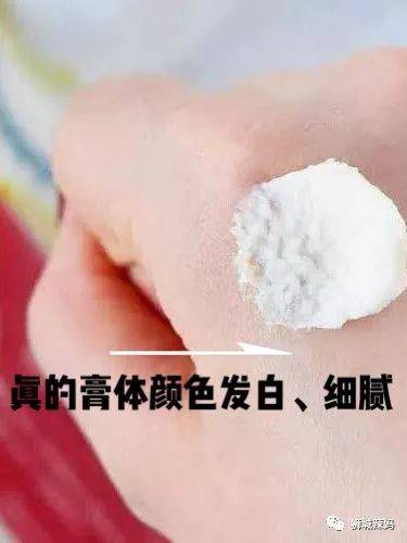 乳白色的膏体挤在手上,软糯的慕斯质地,里面有小颗粒,粘粘的,触感很是柔顺。