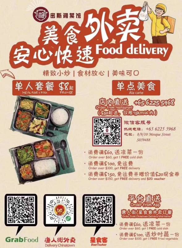 配送渠道:星食客、唐人街外卖、Foodpanda、Grabfood