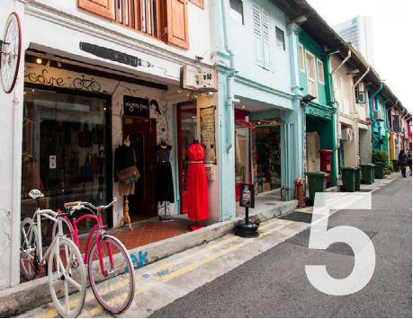 小小的新加坡拥有不胜枚举的艺术博物馆、画廊和展览 馆,哈芝巷 (Haji Lane) 更是新加坡的惊喜之地。在这里, 一条充满了涂鸦墙的狭窄小巷,众多潮流品牌、稀奇小 店以及复古服饰,吸引了许多年轻人和潮流人士。
