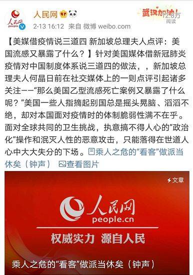 为新加坡总理夫人何晶点赞!刚刚,又一次力挺中国