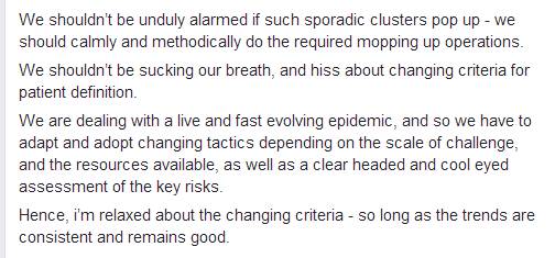 “我们应该冷静的有条理的做好必要措施,我们不应该对确诊方法的改变或病例的定义嘘声四起。”