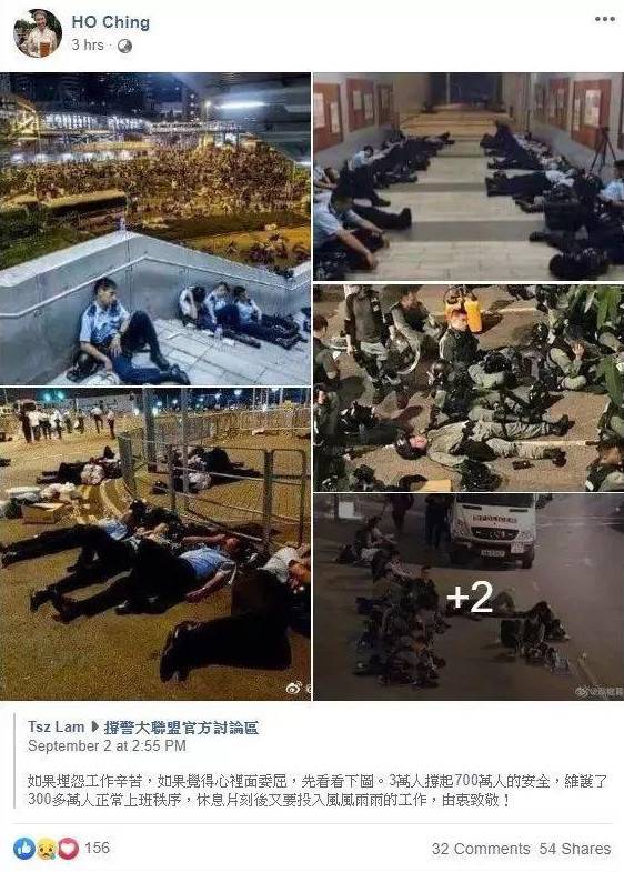 “如果埋怨工作辛苦,如果觉得心里面委屈,先看看下图。3万人撑起了700万人的安全,维护了300多万人正常上班秩序,休息片刻后又要投入风风雨雨的工作,由衷致敬。”