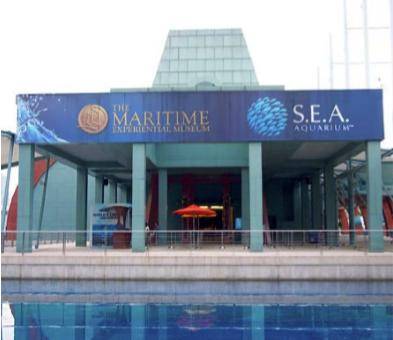 S.E.A. 海洋馆承载 4.5 万吨水,馆内有 10 万多只海洋 生物共 800 多个品种,10 个展区,是全球最大的海洋馆。除了缤纷的 海洋生物,尤其是还有可以亲手触摸的海星,海洋馆的另一个景观就是 它 8.3 米高 36 米长的巨型水族箱,它也是全球最大的观赏屏。 在非高峰期,海洋馆的门票包括“台风剧场”的入门票。台风剧场是一个 360 度全方位剧场,建在一艘将要从新加坡开往阿拉伯的旧船上。剧场 用 4D 的效果带你感受台风来临时狂风暴雨、巨船摇晃的现场感。最后 这艘船会因遭遇暴风雨而沉入海底;当你回味着 4D 的效果走出剧场时, 正好会在海洋馆的入口看到这个沉船的观景窗,一气呵成的连贯体验, 让你的海洋馆之旅更为完美。