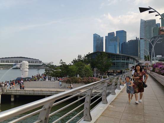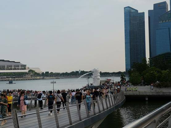 从花芭山下来,穿过市区,路过牛车水和小印度,观览了新加坡干净整洁、秩序良好的市容市貌,来到了鱼尾狮公园,这是新加坡的标志性旅游景点。