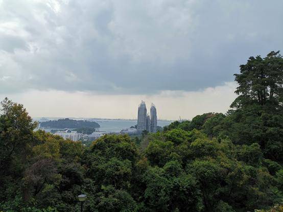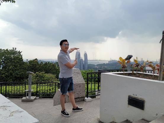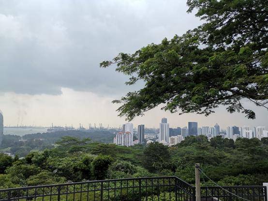 新加坡导游接到我们后,就将我们带到了新加坡的“最高峰”花芭山,花芭山是一座城市公园,一面可以看到海港,再远一点看就看到了马来西亚和印度尼亚。