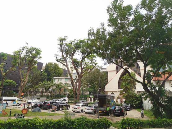 新加坡已经没有地方种树了,现在只好在楼上搞绿化