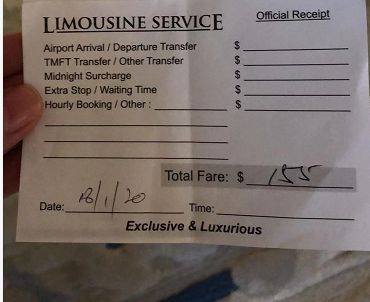 而当天收取155新币车费的司机,仅仅给出了一张手写的收据,没有任何费用明细。