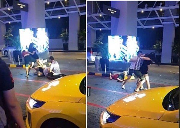 (新加坡23日讯)过肩摔、飞踢、扯破衣!三男一女疑因排队等德士起纠纷,凌晨在滨海湾金沙外上演全武行。