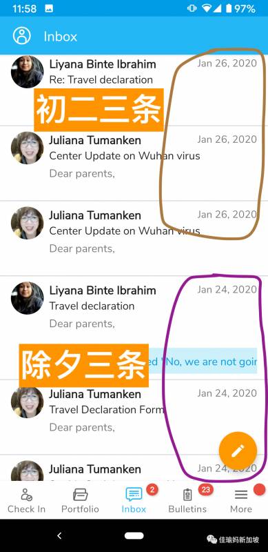 孩子妈妈们最关心的问题就是还要不要继续去幼儿园。佳瑜是一直去幼儿园,没有间断。佳瑜妈的信心来源于新加坡从教育部到学校对疫情防控的持续努力。农历新年期间,幼儿园很多老师和行政人员没有休假,每天多次和家长信息沟通关于新肺炎学校的应对方式。