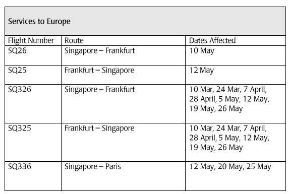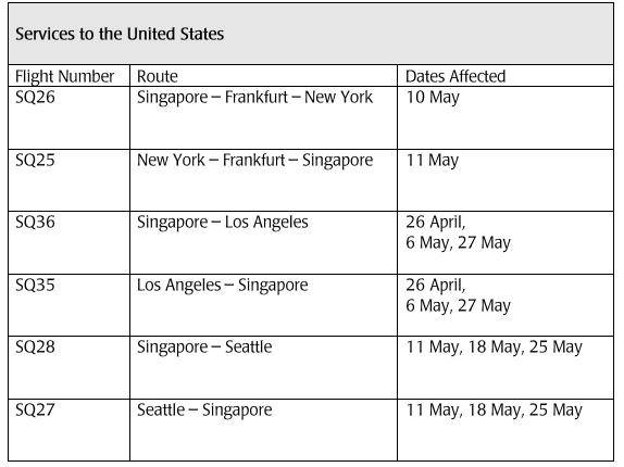 此外,该航空公司还取消了新加坡和洛杉矶之间以及新加坡和西雅图之间的某些航班。