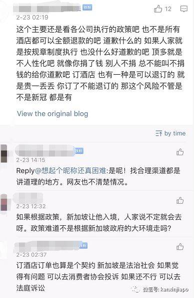 今年1月第一次预订了D酒店,我没想到这个订单成了一个让人伤心、失望、愤怒的经历。 1月11日,预订了2月底3月初的行程,涉及携程、中国国际航空、新加坡酷航、澳门的酒店、新加坡滨海湾金沙酒店、新加坡D酒店。 1月23日,武汉封城、疫情爆发; 2月2日,新加坡政府根据疫情,临时限制中国公民入境,并且暂时停止中国公民的赴新加坡签证; 2月5日,我开始联系所有的OTA、航空公司、酒店,处理退改机票、酒店的事宜;当天,全部航司、酒店都予以了免费、全额取消并退款,除了一家酒店,新加坡D酒店(原预订入住日期为3月1-4日)不同意。 2月5日,通过携程与新加坡D酒店沟通,协商是否可以免费取消预订。新加坡D酒店的回复是:(1)原订单是不可取消和退订的订单; (2)特殊情况下,同意修改订单入住日期(未来半年内); (3)修改入住日期需要补房价差价(如果房价低于此前订单、不退;如果房价高于此前订单,补差价); 以上3点可以理解也非常感谢,但此后的补充要求和发生的一切就开始让人愤怒不已了。(4)要求48小时之内告知修改后的入住日期(让人生气的地方是,在当时疫情、新加坡政府的限制入境政策之下,我如何预估自己何时能够再去新加坡?!?!) 2月17日,再次与D酒店协商,回复与2月5日相同,再次确认,可以补差价改期;2月20日,与D酒店协商,改期至7月1日-4日; 20日上午,第一次回复,原订单不可取消、不可改期(推翻了此前一直同意改期的说法); 20日中午,第二次回复,不可取消,可以改期,但需要补差价,175新币/晚;(加上原订单支付的价格大概为175新币/晚,则酒店对于改期后的价格报价“大约”是350新币/晚;经过查询,同一时间,当天中午OTA对于相同7月1-4日该酒店相同房型报价约为190新币/晚,D酒店官网报价约为200新币/晚) 我觉得这个差价和报价翻了一倍,高得离谱,于是再次沟通确认; 20日下午,第三次回复,确认此前关于改期的补差价报价是准确的,即确实是补175新币每晚(合计约350新币每晚);但是酒店同意按照OTA对于该酒店7月1-4日的报价进行补差价,但要求先生成新的订单并全额支付,酒店在看到新订单之后才做旧订单的取消。 至此,新加坡D酒店的退改事情终于完成。在特殊疫情时期,所有的努力都值得尊重和感激。 D酒店针对这个订单的操作(a)不可取消;(b)可以改期;(c)补差价(多不退、少补);我都可以理解和接受。 但D酒店:(d)要求在疫情爆发期、新加坡政府延缓中国公民签证的时期,48小时之内告知更改后的入住时间;(e)一再变化,甚至推翻此前他们同意改期的说法,变为不同意更改;(f)同意更改之后,报价远高于OTA、D酒店官网同期的报价,超出近一倍的水平…… 等等此后这些D酒店提出的附加条件和发生的一切,显示这家酒店缺少人性、没有爱心、没有服务意识,非常让人愤怒! 我对D酒店进行投诉,要求(1)赔礼道歉;(2)新旧订单全部免费取消并退款;(3)赔偿。 我仍然热爱新加坡,这个国度,我爱她的美丽的风景和美丽的人心。请不要让恶劣商家欺负外国旅游者,更不要让喜爱新加坡的旅游者伤心。*以上观点为作者意见,不代表本刊立场。对于此投诉,许多网友纷纷发表了看法: