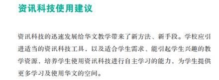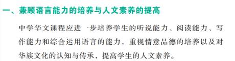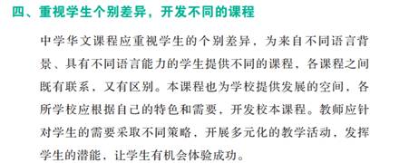 根据教育部MOE中学华文课程标准,各学校根据学生文化背景,制定适合本校的华文教学课程。