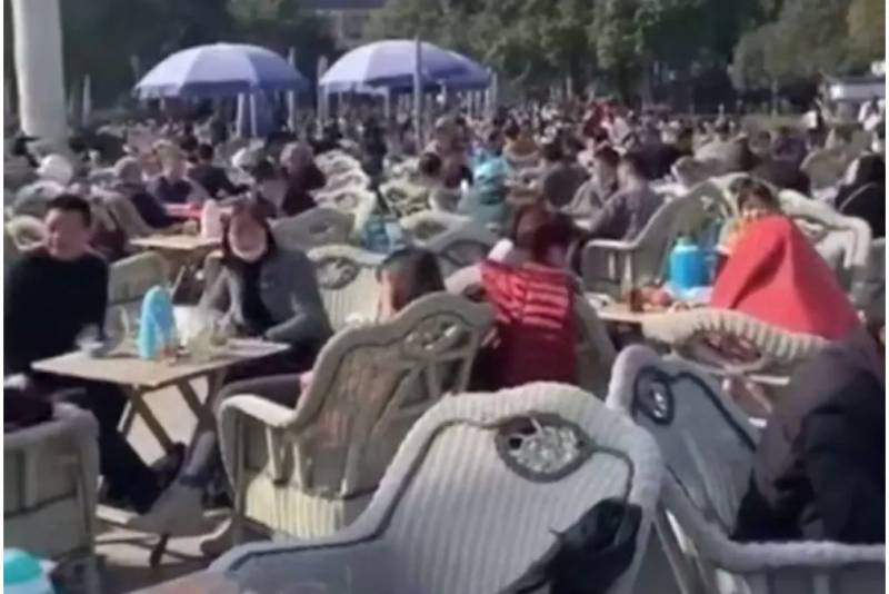 四川在广场喝茶的人群
