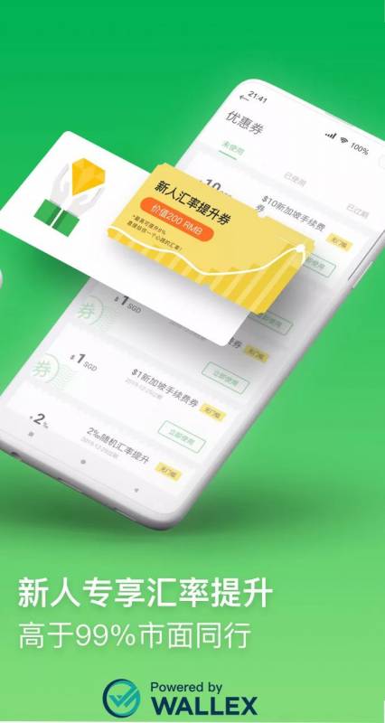 新注册用户以及注册但未汇过款的用户, 均可获得96元无门槛现金券一张, 汇1新币即可到账100人民币!