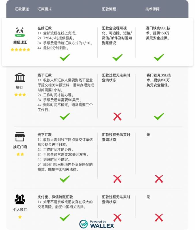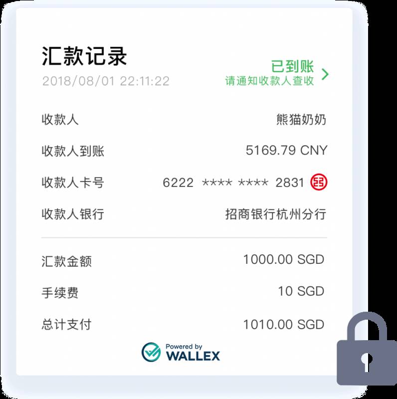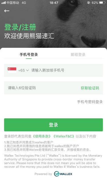 熊猫速汇在新加坡汇款业务由Wallex支持,Wallex是由新加坡金融管理局(MAS)许可的汇款代理,也是新加坡熊猫速汇品牌的运营商,严格遵守国际汇款业务规则,保证每笔交易合法合规。有了政府的监管,汇款无忧!