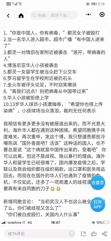 有时候大家(指海外一些人)分不清‘青红皂白’,看到华族或者华裔就以为是中国来的,或者以为是武汉来的,就对他们有距离的感觉。
