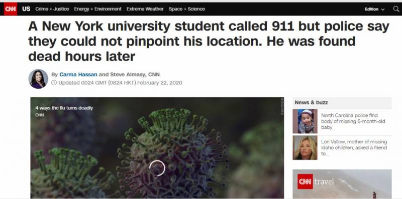 来源:CNN报道:纽约一间大学的学生拨打911,但警方未能准确找到他的位置,数小时后他被发现身亡。