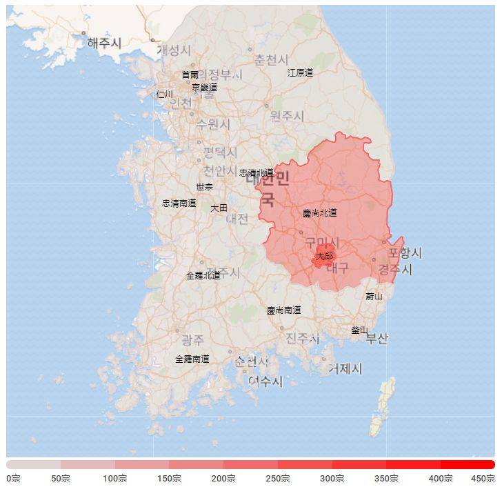 韩国疾病及预防控制中心(KCDC)指,目前几乎韩国所有县市都有感染个案,而在大邱市的驻韩美国基地中,也有内部人员家属确诊。韩国疫情主要集中在大邱市及庆尚北道。疫情“重灾区”是大邱市,以及庆北清道郡。