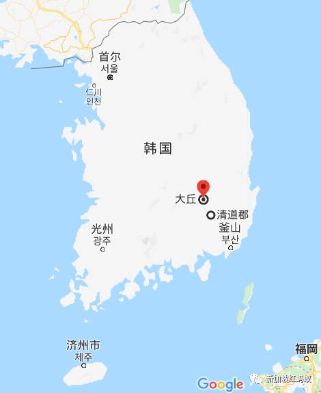 不认识韩国“重灾区”大邱(图中标为大丘)和清道郡的蚁粉,它们毗邻,靠近釜山。(谷歌截图)