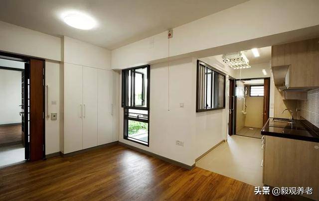 每间公寓面积大约38-60平方米,均采用无障碍设计,方便轮椅使用,还在细节上充分照顾老年人的生活,选用更安全的弹性乙烯地板,以更易清洁的电磁炉代替明火炉,可伸缩的晾衣架更省力。每间公寓的紧急警报系统可随时向社区乐龄中心求助。