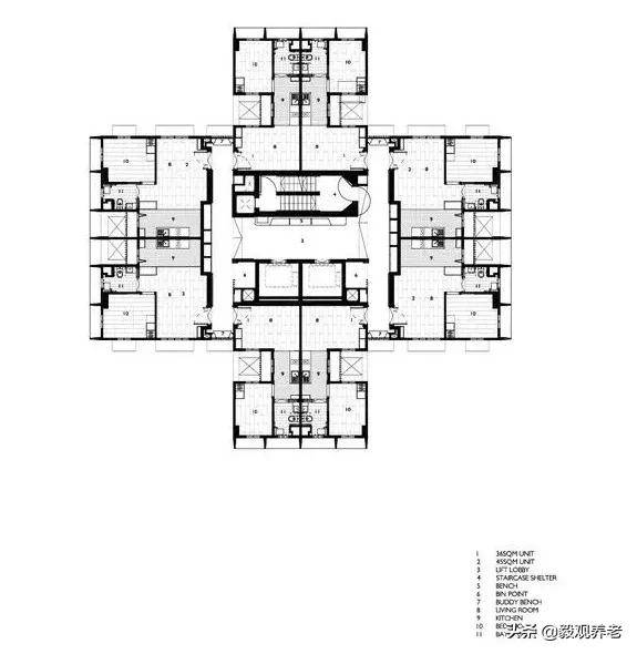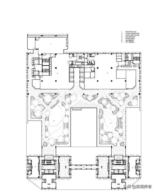 将老年人住宅与医疗、餐饮、零售、服务设施相结合。旨在加强住区老年人之间、代际之间的交流联系,让老年人在此快乐、积极、健康地生活,以积极的方式来应对孤独、疾病、抑郁和自我中心等行为。