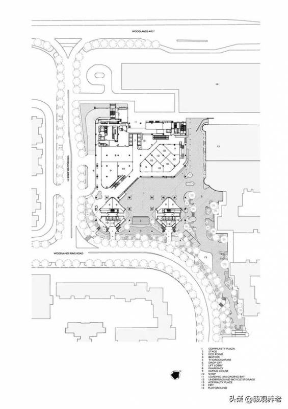 采用三明治形式,下层为社区广场,中层为医疗中心,上层是带有社区公园的老年人住宅,为社区内各年龄段人群提供了各种便利设施和社区空间。