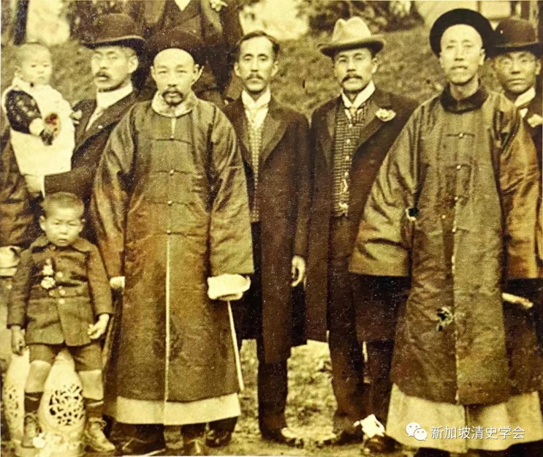 身着清朝官服的驻新加坡首任总领事黄遵宪(左二)