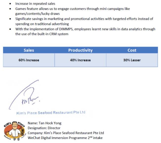 本地海鲜餐厅“金记螃蟹”在与点点客合作后,销售额增长60%,生产率增长40%,而销售及宣传成本则削剪了30%,显示出线上销售“低成本、高利润”的特点。
