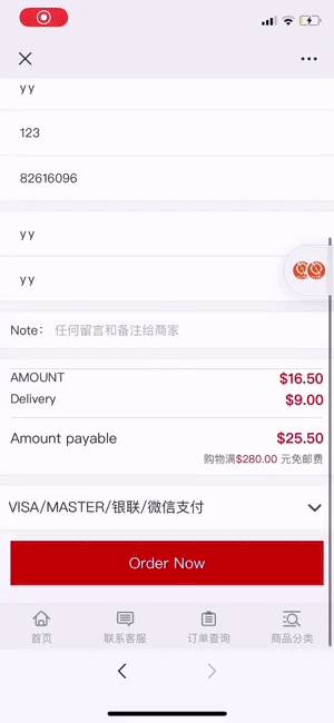 顾客选好产品后,即可立即下单并进行支付,非常方便快捷。而商家也可以通过“客服”功能直接和顾客取得联系,通过“查询”功能接收和整理订单。
