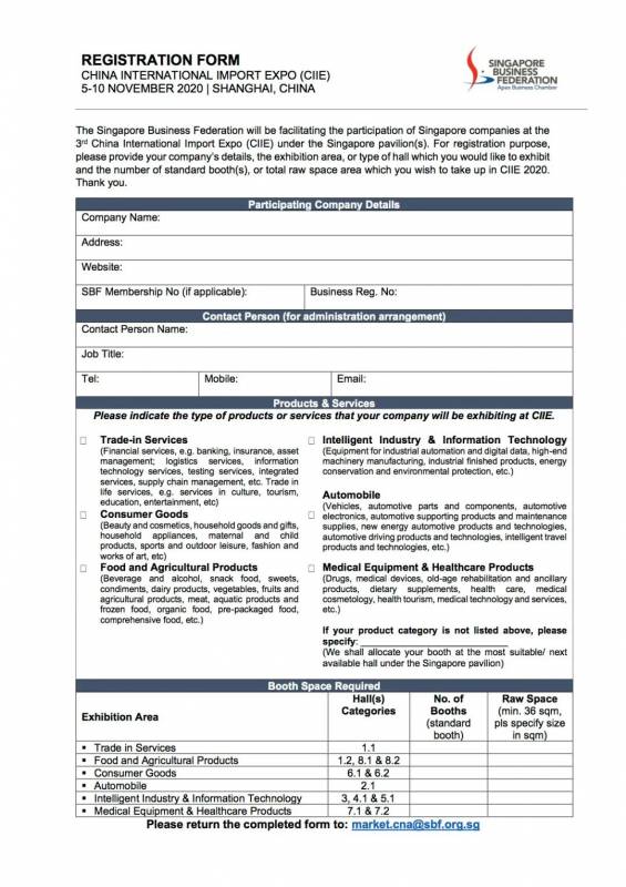 中国进口博览会通过两年的圆满举办,得到了世界各国的认可。欢迎新加坡企业积极报名参展,共享中国经济发展红利,抓住中国巨大市场所带来的广阔机遇。符合新加坡企业发展局(ESG)参展津贴条件的新加坡企业将获得展位补助津贴。展位有限,请记得在三月底之前及时报名,以免错失商机。